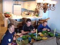 Ansonsten haben wir uns schon ganz gut eingelebt, jeder packt zum Kochen seine eigenen Geheimrezepte aus, also im Großen und Ganzen geht es uns gut und wir sind bestens eingestellt.